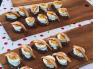 Sur le toast déposer un cuillère de la préparation au yaourt, quelques pousses d'épinard, le demi blanc d'œuf rempli de mayonnaise aux jaunes d'œuf dur, et ajouter quelques lamelle d'esturgeon fumé